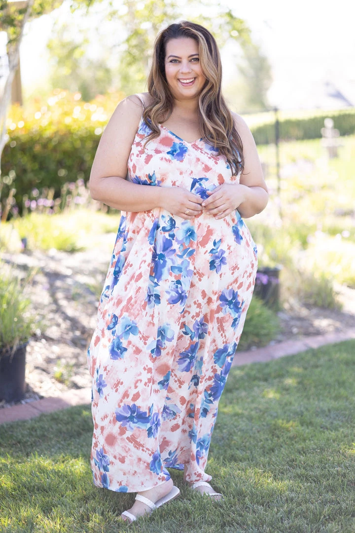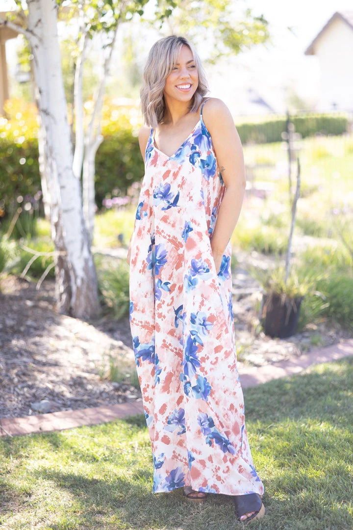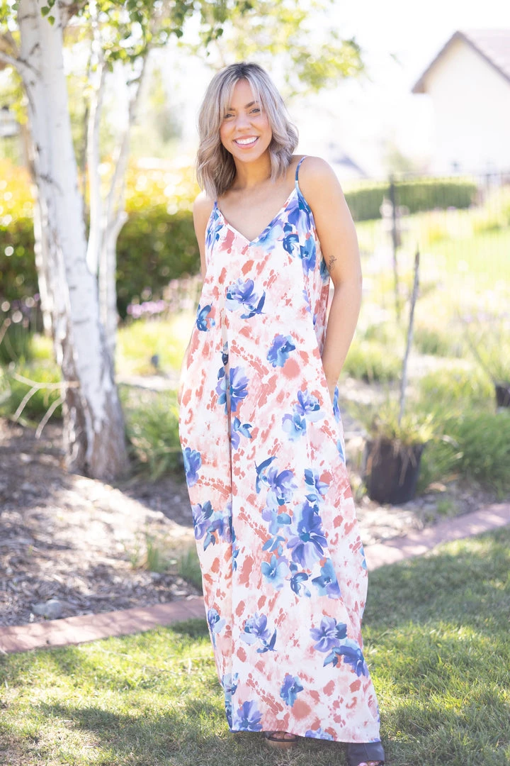 Flowy and majestic, this maxi dress will make all your dress dreams come true. Designed with a super slouchy silhouette, this dress features a v-neckline and side pockets!