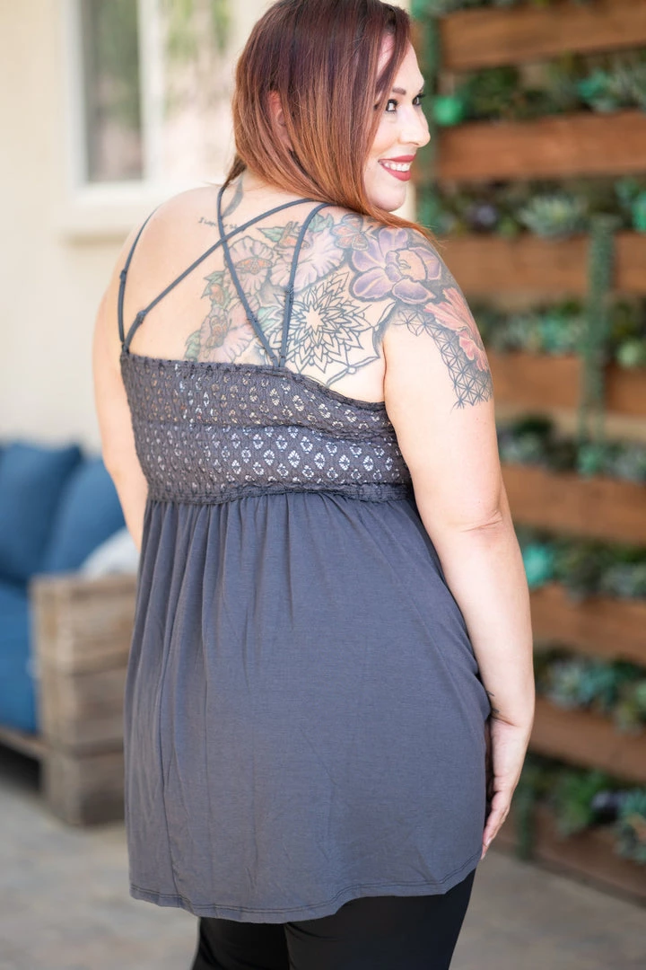 Everything we love about bralettes, just now in top form!  It features double adjustable straps, padding and a thick back band to keep you feeling supported and comfortable. Wear this piece on it’s own, or under your favorite layering piece. Best part…no bra needed! It’s built in!