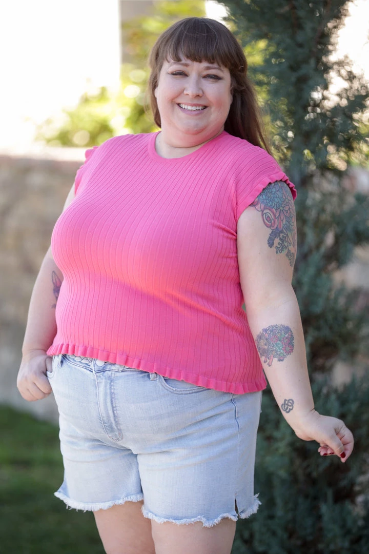 This vibrant coral knit top is perfect on its own, or for layering. Made from THE softest knit, this top features a round neckline, and ruffled detailing.Â