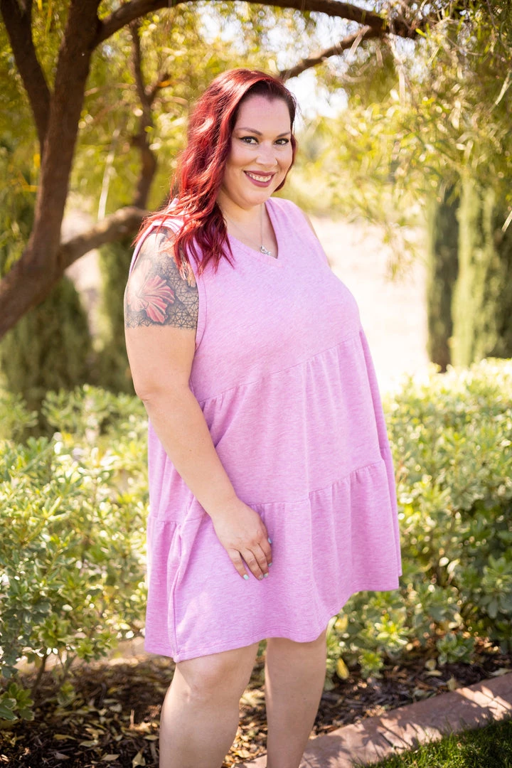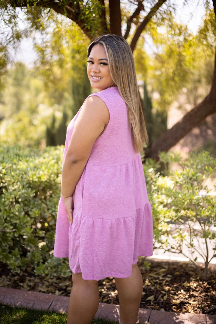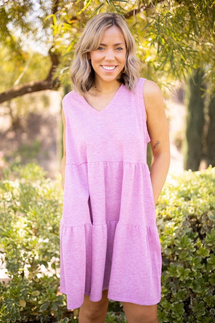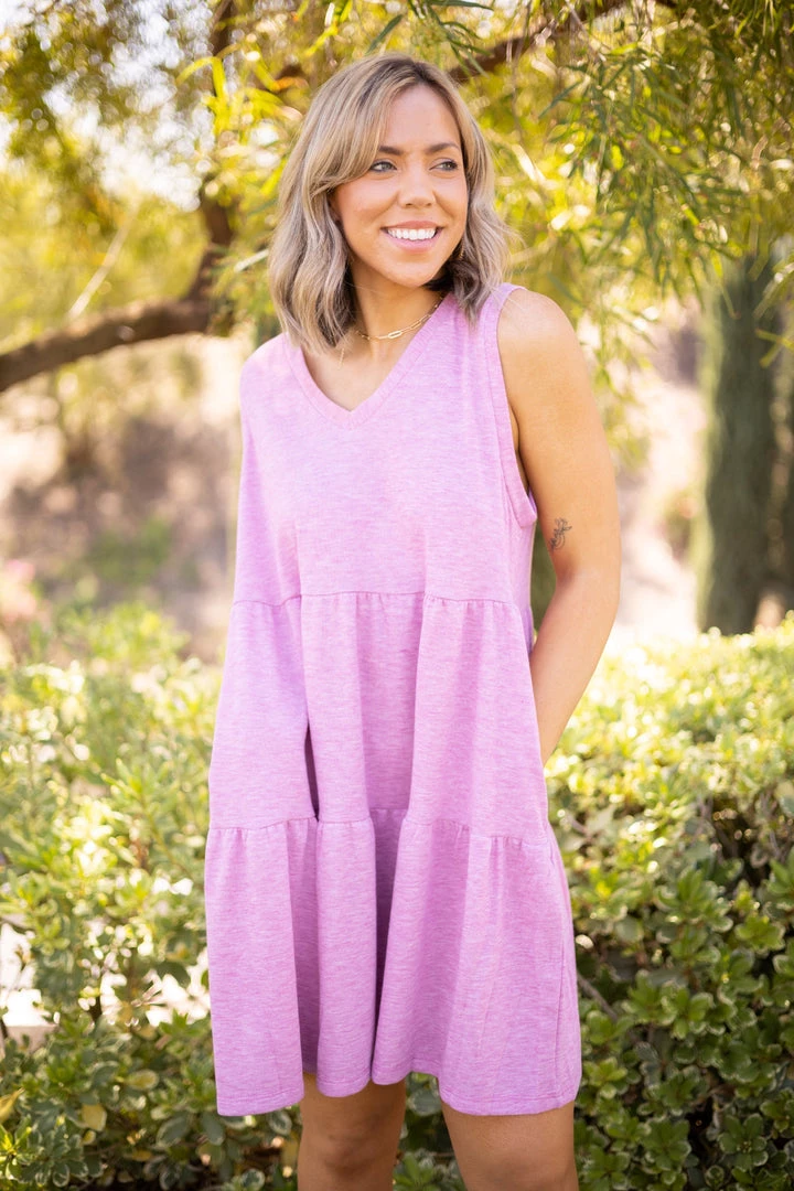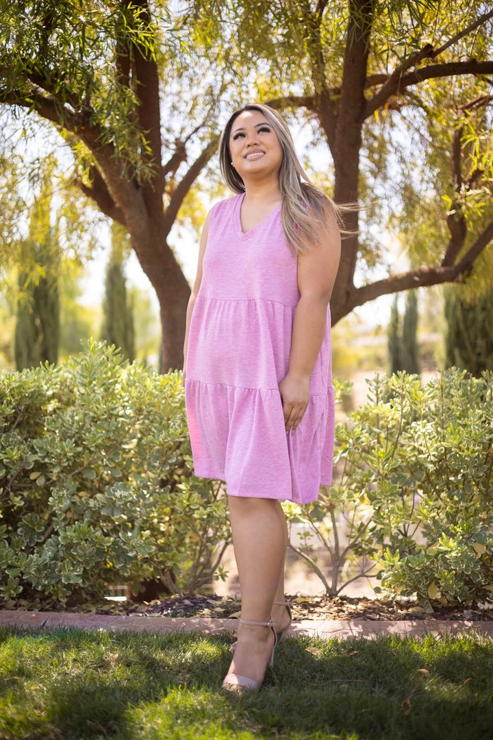 The perfect day date dress! Made from high quality terry fabric, this dress features a v-neck, tiered ruffle hem and side pockets. Â
