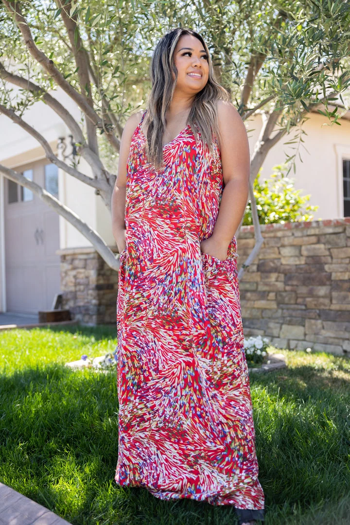 Flowy and majestic, this maxi dress will make all your dress dreams come true. Designed with a super slouchy silhouette, this dress features a v-neckline and side pockets!