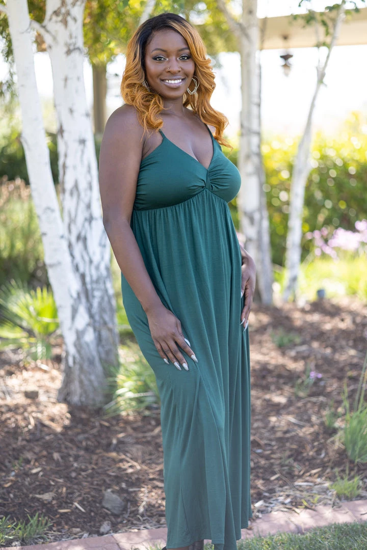 This stunning hunter green maxi is sure to make all your dreams come true. The fit has the perfect amount of drape, while still accentuating all of your beautiful curves. The adjustable straps make this perfect for every single body type! Featuring a sweetheart neckline and shirred sides, you definitely don’t want this one to pass you by.
