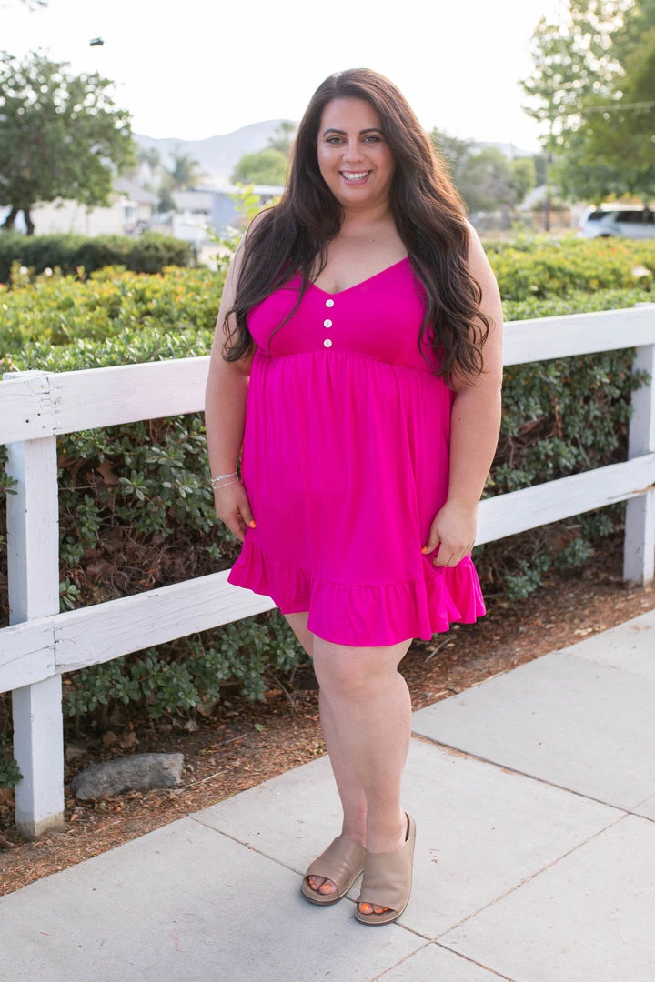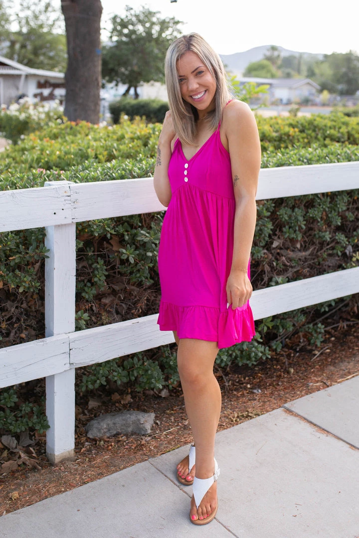 This is seriously the perfect little summer dress. Not only is it comfortable, but it’s effortless and it can be worn as a dress or a tunic! With relaxed fit, this dress features spaghetti straps, a v-neck with button details, empire waist and ruffled hem.