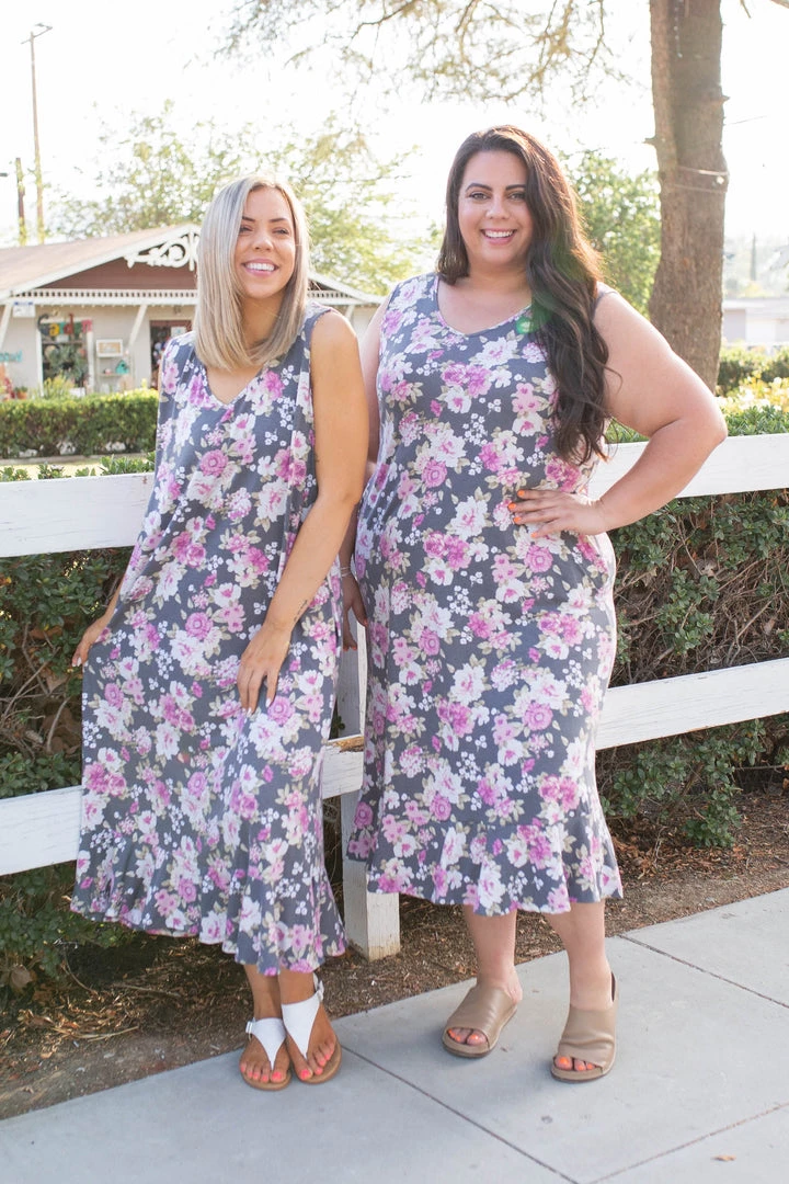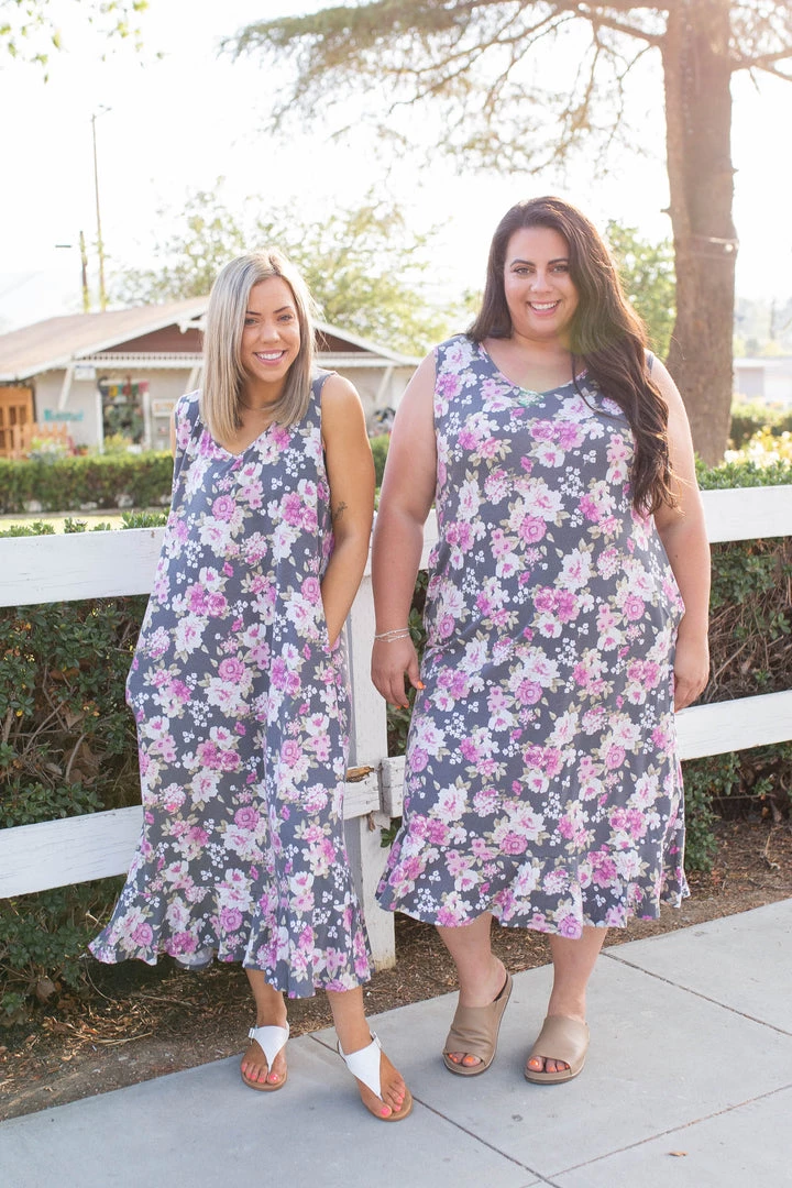 Holy wow, this dress is everything amazing. With a relaxed fit, this sleeveless dress features a mid length ruffled hem, v-neck and pockets.