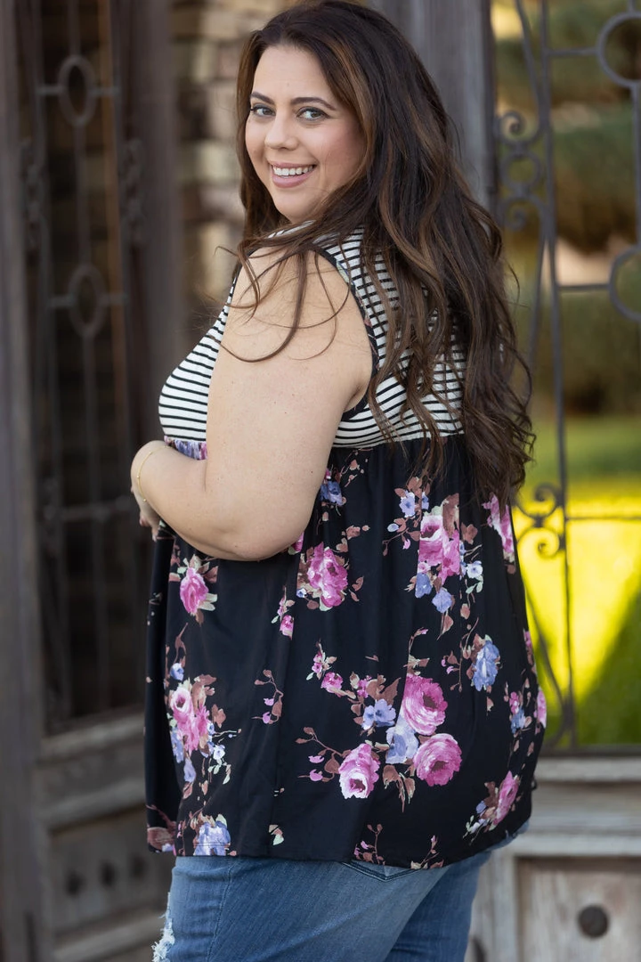 Empower yourself with this gorgeous colorblock sleevess top. Made from buttery soft fabric, this top features a relaxed fit, round neckline and rounded hem.
