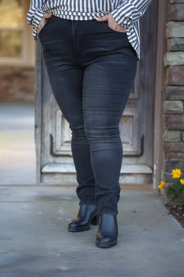 These pair of non distressed denim jeans have THE best stretch that will fit you like a glove. These high rise jeans feature a button closure with zipper and 5 pocket detail.