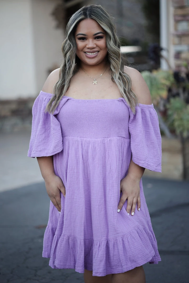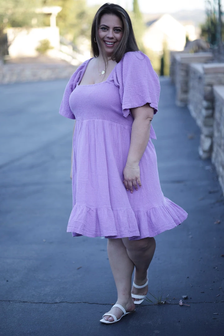 This dress will forever be your one that you cherish for all your days. The fit, the style, the fabric…everything about it is perfection. With a square neckline that can be worn on or off the shoulder, flutter short sleeves and ruffled hem.