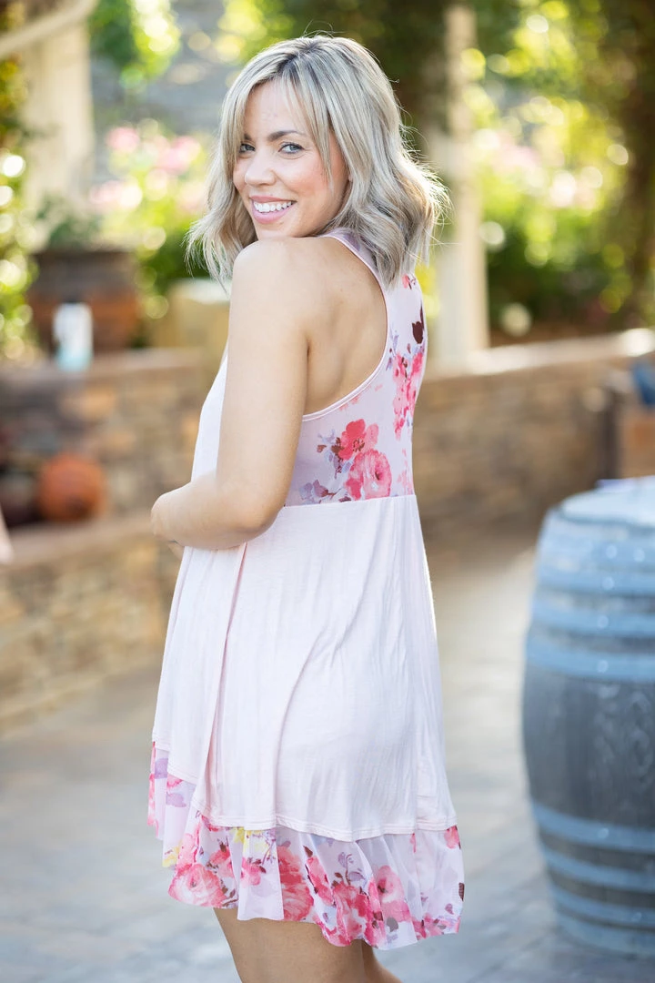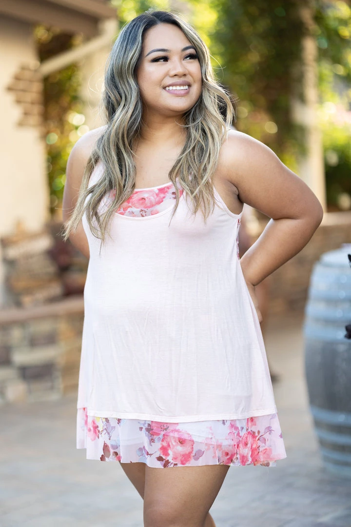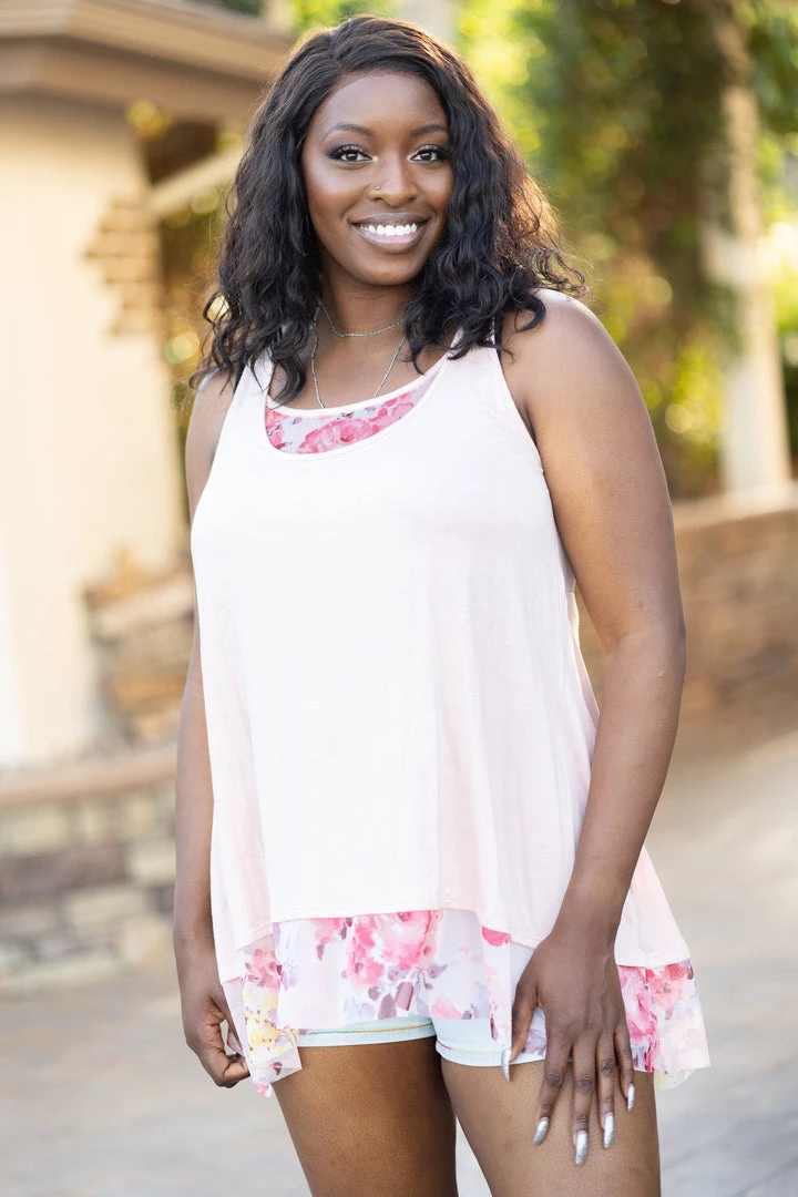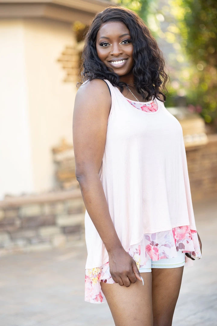 This mesh contrast sleeveless tunic is the perfect lightweight tunic that you’ve been searching for. With an oversized fit, this top features a round neckline, racerback and hi lo hem.