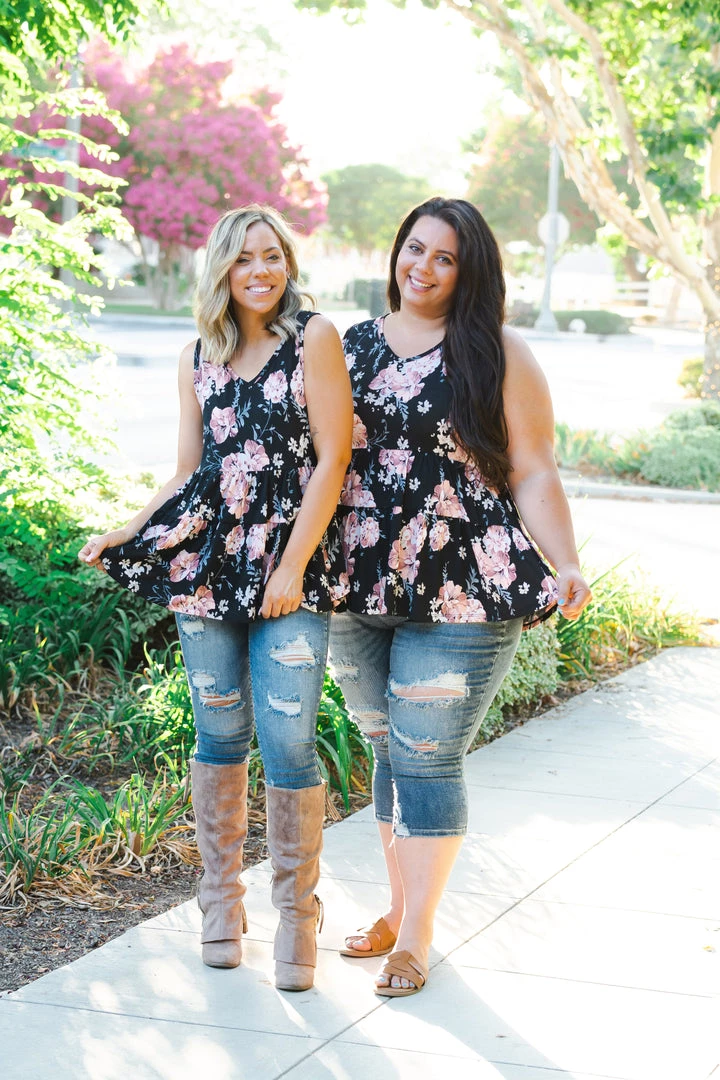 Made from bulgari fabric, this tiered babydoll is to die for! This top has amazing stretch and features a v-neck and tiered hem.