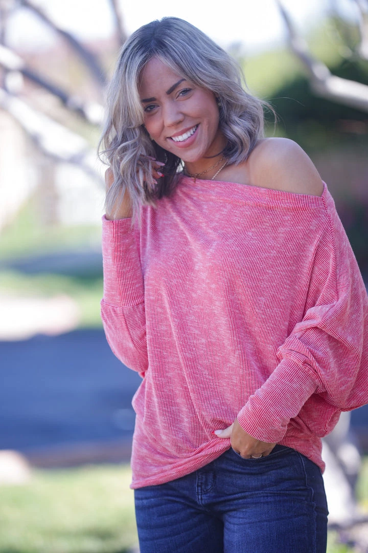 This lightweight dolman just whispers love. The color, the fit, the fabric…everything is pure love. With a relaxed fit, this top features long dolman sleeves, a tapered hem and wide boat neck that can be worn on or off the shoulder.