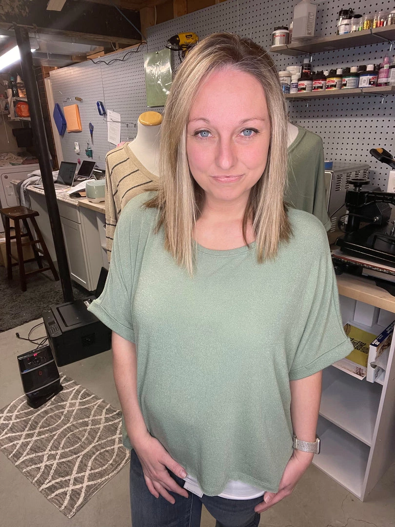 Incredibly soft cuffed sleeve tee in nnew olive. Pair with shorts or jeans for a cute casual outfit.Â