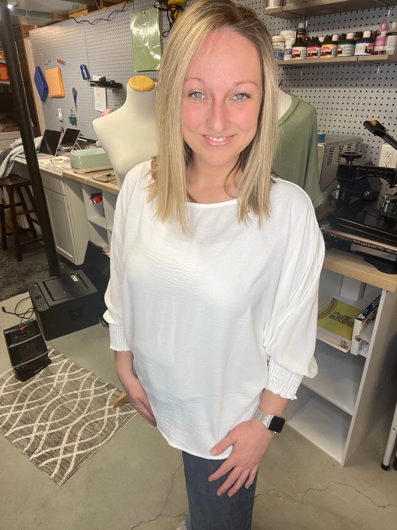 I love this top! Perfect spring blouse. Pair with your dress pants for work, tuck it into a skirt for a luncheon, or just with jeans for a casual outfit. This one will easily transition through seasons and day to night!Â