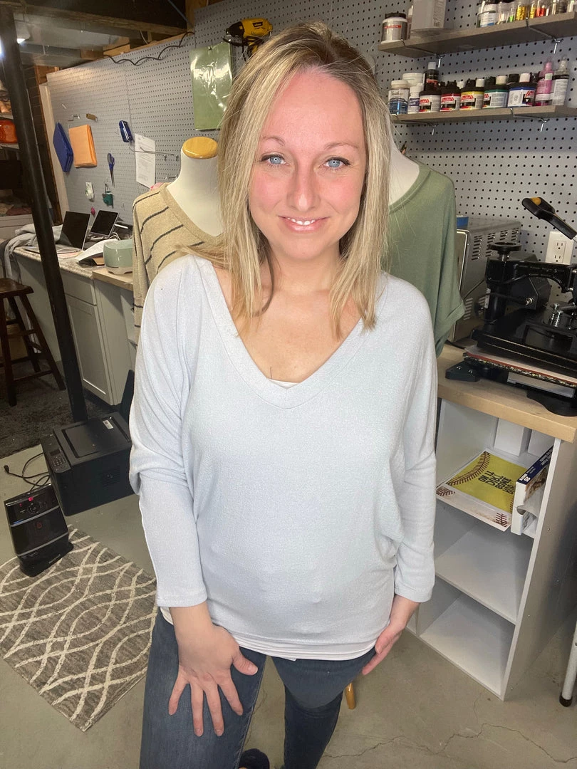 This soft v-neck sweater is perfect for the upcoming season. It’s lightweight and fun. Pair with jeans or shorts for a fun day out.