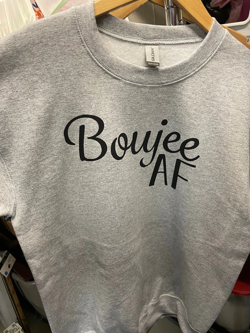 Boujee Unisex gray crew neck sweatshirt.