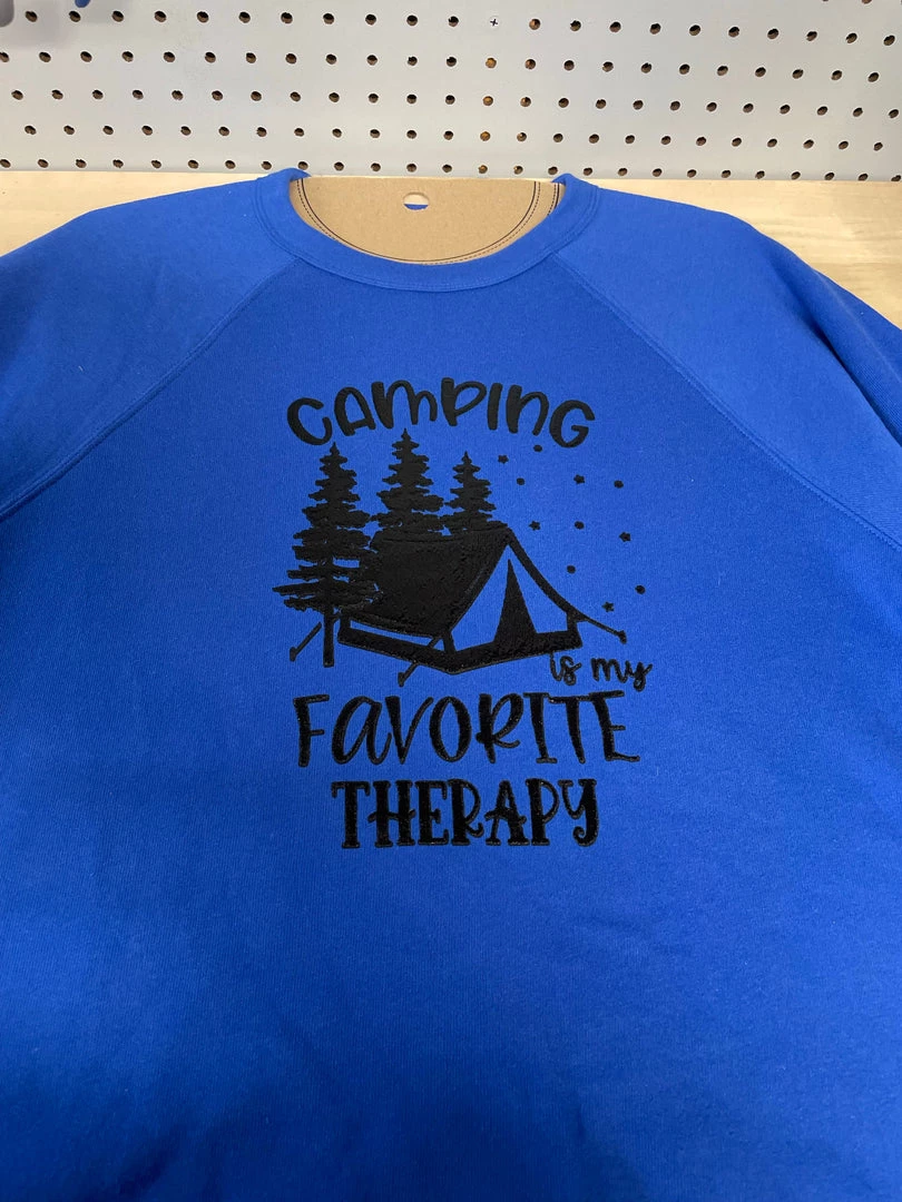 Bella Canvas Crew Neck Fleece unisex sweatshirt featuring Camping is my Therapy graphic.